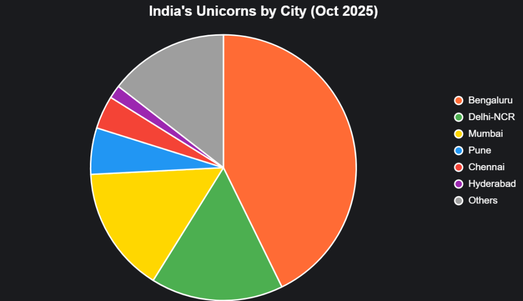 This table highlights concentration: Top three cities hold 90%+ unicorns, but Pune’s 53-spot leap signals a broader boom.